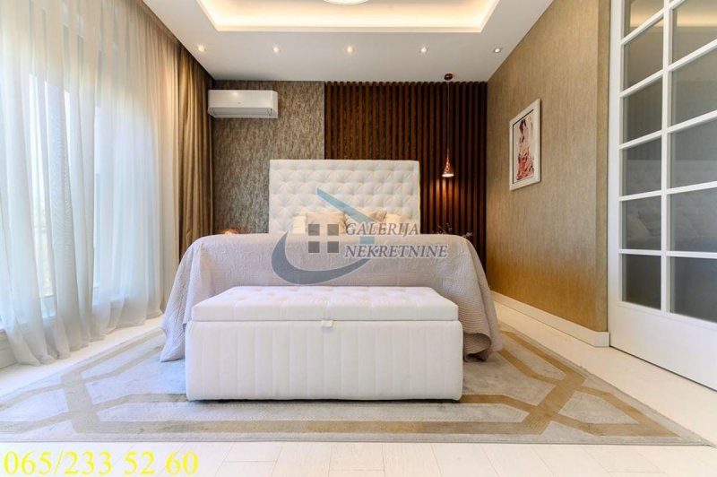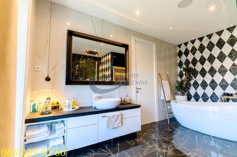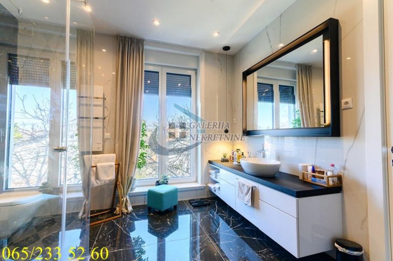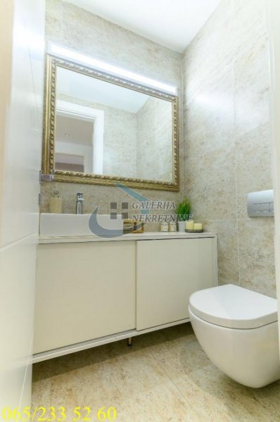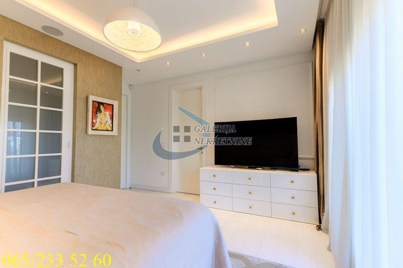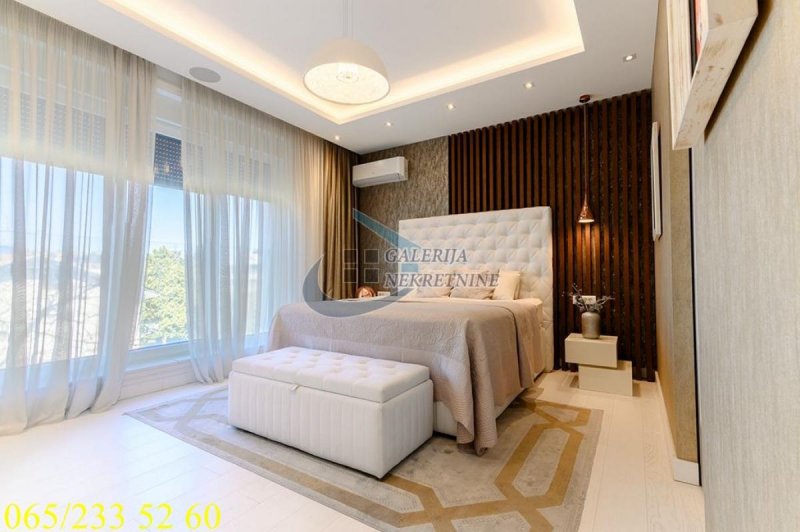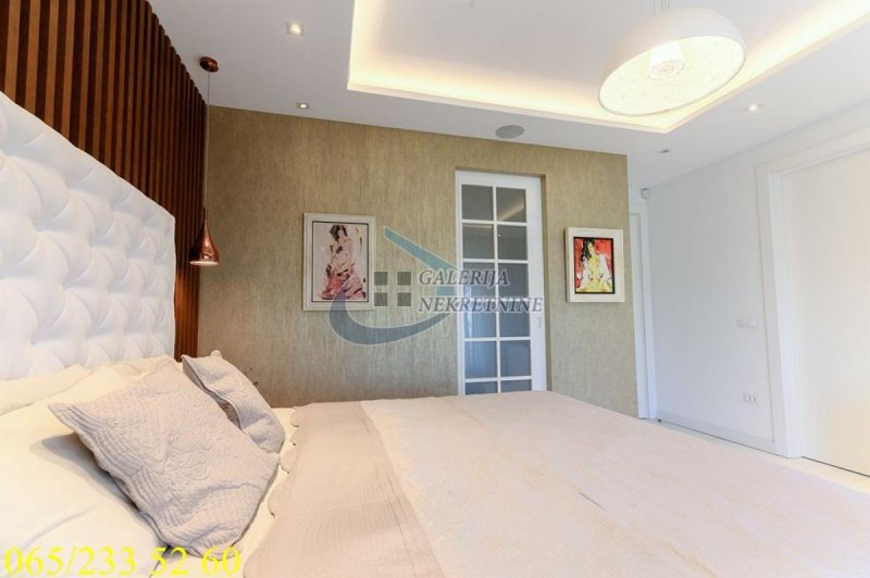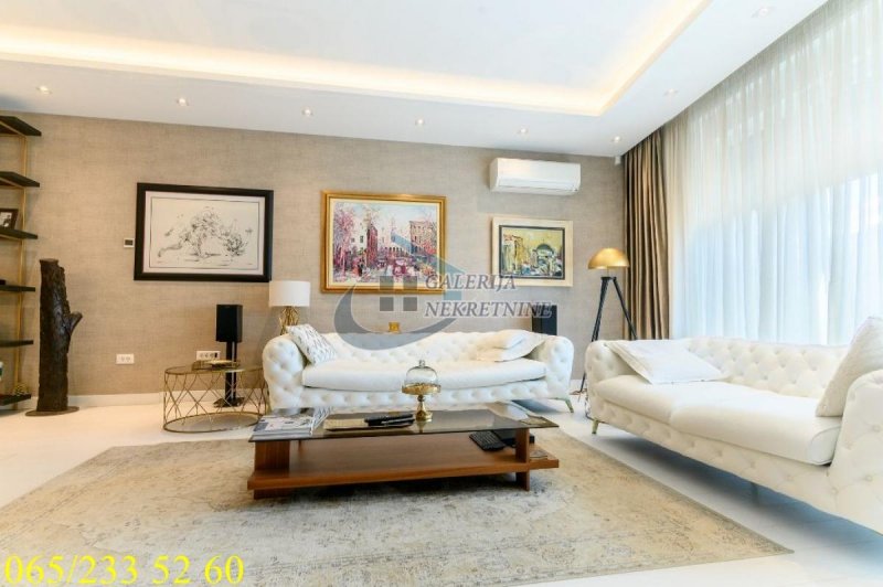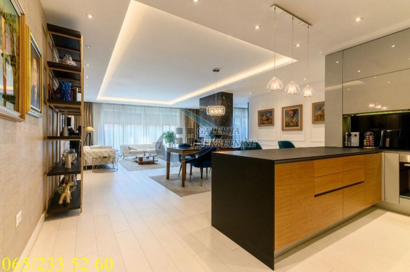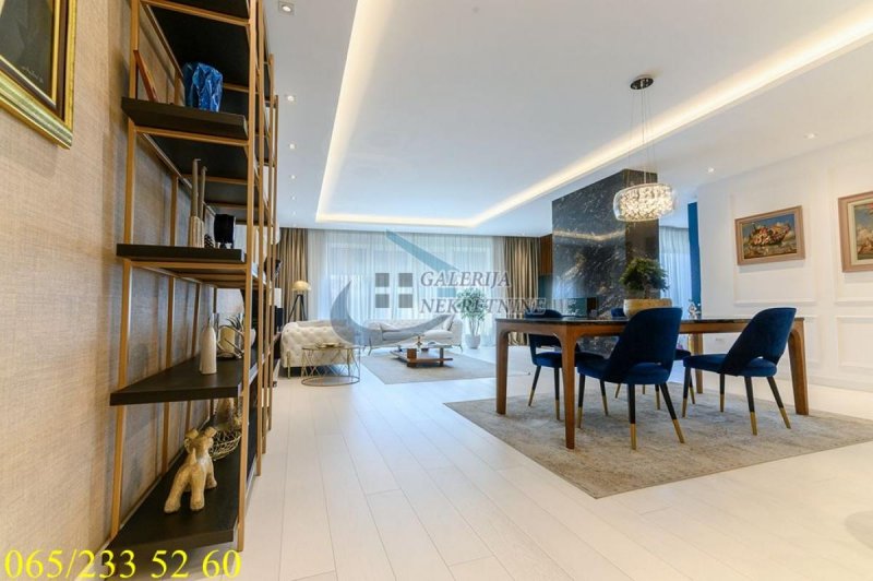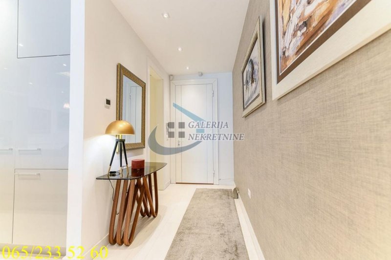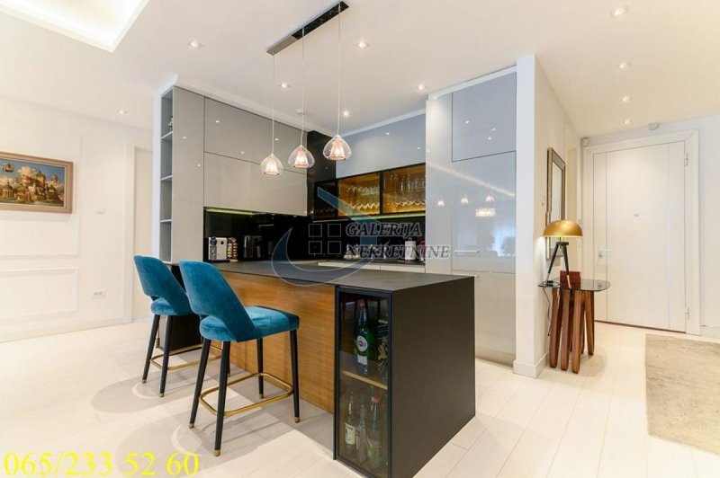 An exclusive, luxurious two-roomapartment is offered in one of the most sought-after locations in the city, only about one hundred meters from the TV Pink building. It is located in an elegant, recently built residential building, occupied four years ago, with a small number of apartments, a representative entrance, premium façade, and a modern elevator. The apartment is double-oriented and exceptionally bright, which further contributes to the pleasant ambiance and quality of living. It is fully equipped with carefully selected designer furniture and top-quality appliances and is being sold almost completely furnished (only the artworks and personal belongings will be removed), allowing the future owner to move immediately into a space that exudes style, comfort, and sophistication. The living room ambiance is further emphasized by a bioethanol fireplace, while maximum comfort is ensured by underfloor heating with three zones, connected to a smart home system that controls blinds, lighting, air conditioning, alarm, and numerous other apartment functions via an application. For a complete multimedia experience, a high-end audio system with distributed speakers in three zones throughout the apartment and the bathroom has been installed, as well as Samsung televisions of 65 and 75 inches. The master bedroom features a walk-in wardrobe, further emphasizing the luxury and practicality of the space, as well as a bathroom designed as a true private spa oasis – a sauna, freestanding bathtub, and spacious shower cabin with a Hansgrohe rain shower system provide the experience of a luxury hotel within your own home. Additionally, a Finnish sauna has been installed in the master bathroom, and its operation can be controlled through a smart application. The apartment also has a separate guest toilet, which further increases the level of comfort.