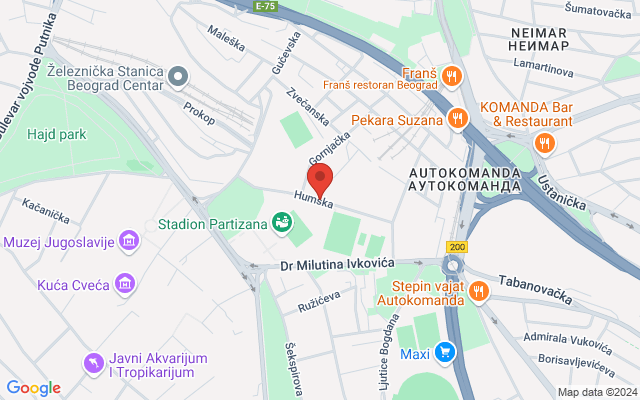 Humska ulica smeštena između Bulevara kneza Aleksandra Karađorđevića i Zvečanske spaja Dinarsku ulicu sa ulicom Dragana Mancea. Iz ovog dela grada, sa lepim parkovima, starim očuvanim kućama i manjim zgradama, kratka šetnja vas vodi do Hajd parka, stanice Prokop ili Autokomande odakle lako možete stići do svih tačaka u gradu. Lokacija tik uz fudbalski stadon Partizana, pokrivenost kompletnom infrastrukturom, odlična saobraćajna veza sa centrom, Novim Beogradom i sa ostalim delovima grada, čini ovaj deo grada sve traženijim za udoban život.
