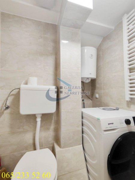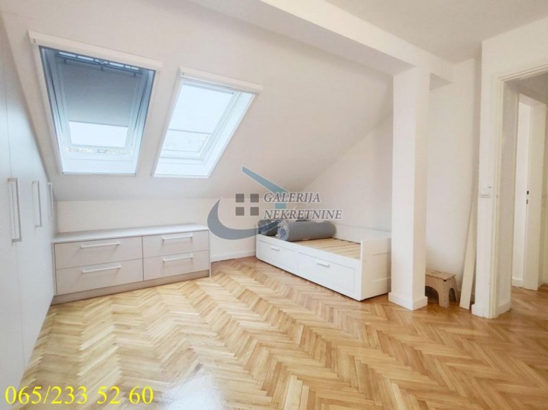 U prilici smo da vam ponudimo u zakup udoban, odlično organizovan i kompletno renoviran stan na četvrtom, ujedno i poslednjem spratu održavane zgrade bez lifta, okružene zelenilom i parkingom bez naplate. Sam stan je orijentisan suprotno od ulice, svetao i miran, sa izdvojenom kuhinjom. Kompletno, kvalitetno i sa ukusom renoviran pri čemu je raspoloživ prostor maksimalno iskorišćen. Opremljen najsavremenijim Velux prozorima sa roletnama i komarnicima, Inverter klimom, belom tehnikom ( mašina je za pranje i sušenje veša) i osnovnim nameštajem. Sve u stanu je novo i malo korišćeno. Grejanje na struju putem klima uređaja omogućava racionalizaciju troškova.