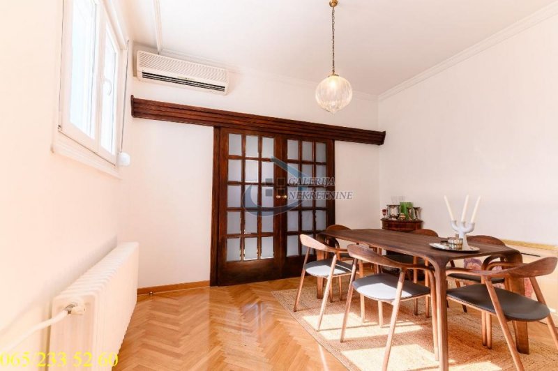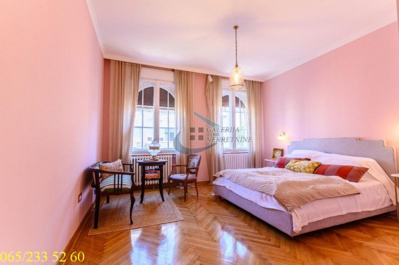 U prilici smo da Vam ponudimo reprezentativnu i luksuznu trosobnu nepokretnost salonskog tipa, koja se nalazi na četvrtom spratu petospratnice sa liftom, zidane krajem 30-ih godina prošlog veka. Zgrada je u odličnom stanju, sa renoviranom fasadom. Komotne prostorije su vrlo funkcionalno raspoređene i svaka ima prozor (prirodnu ventilaciju). Osećaj prostranosti pojačava visina plafona od 3m. Komforu doprinose dva kupatila, garderober, kao i lepa zastakljena lođa sa predivnim otvorenim gradskim pogledom što je retkost za centar grada. Trostrana orijentacija pruža obilje dnevnog svetla. Kompletno, vrlo kvalitetno i sa ukusom je renoviran, pa nikakva ulaganja nisu potrebna. Zbog dva ulaza (jedan trenutno zatvoren) lako je deljiv, a pružaju se i razne mogućnosti za adaptaciju i dobijanje dodatnih spavaćih soba. Grejanje je centralno. Stanu pripada podrum.