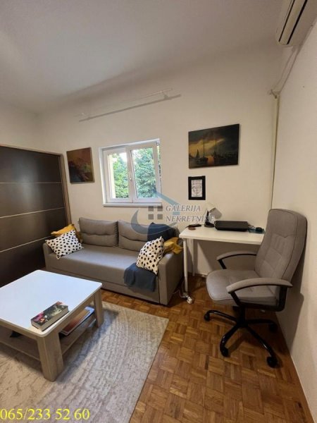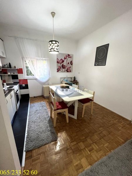 U prilici smo da Vam ponudimo u zakup komforan dvosobni stan, koji se nalazi na drugom spratu salonske četvorospratnice bez lifta. Zgrada je dobro odražavana i u odličnom stanju. Raspored prostorija je vrlo funkcionalan. Orijentisan je suprotno od ulice pa nema buke. Dobro je osvetljen dnevnim svetlom. Osećaju komofora doprinosi vanstandardna salonska visina plafona u stanu. Kompletno je namešten i opremenljen. Grejanje je na TA peći i klime.