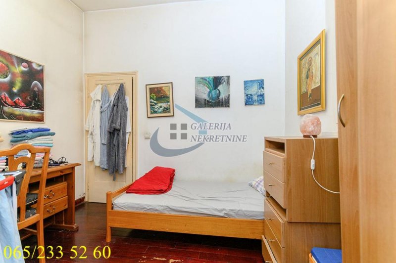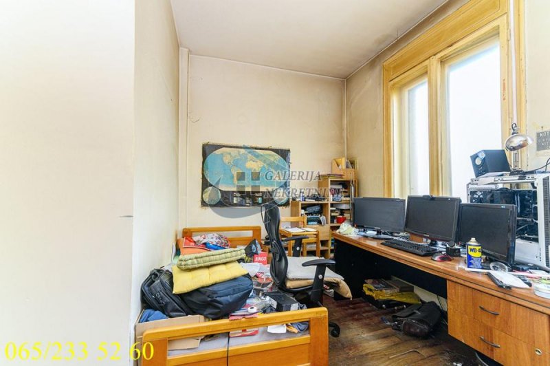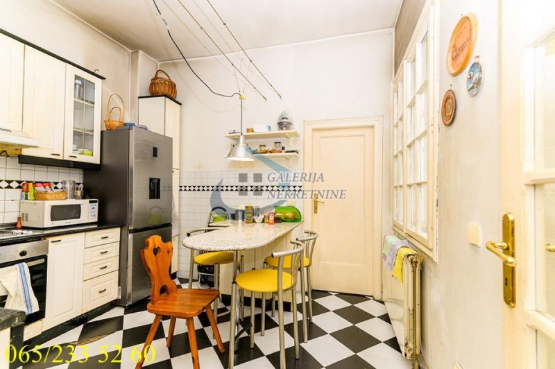 U prilici smo da Vam ponudimo izuzetno konforan petoiposoban stan koji se nalazi na četvrtom spratu od pet u kvalitetnoj stambenoj zgradi sa liftom izgrađenoj 1940 godine. Lokacijski je u neposrednoj blizini Skadarlije popularne kao boemska četvrt. Zgrada je predratna, ima fantastičan ulaz sa kovanim gvozđem i mermernim, širokim, stepeništem. Sam stan je svetao i sunčan, visine plafona 3m, trostrano orijentisan, a maksimum udobnosti se postiže funkcionalnim rasporedom. Sve prostorije u stanu su pravilnog oblika, dobrih veličina i sa prirodnom ventilacijom. Dobijen je spajanjem manjeg i većeg stana, ima dva ulaza (jedan je trenutno zatvoren) pa se lako može podeliti na dve stambene jedinice. Grejanje je centralno, a dva kupatila dodatno povećavaju komoditet. U izvornom je stanju te se budućem kupcu pruža mogućnost da kroz sređivanje u potpunosti izvuče maksimum iz postojećeg prostora i potpuno ga prilagodi sopstvenim potrebama.