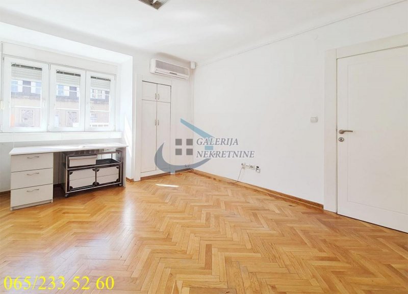 U prilici smo da Vam ponudimo u zakup komforan dvoiposoban stan na petom spratu odlične petospratne salonske zgrade građene krajem dvadesetih, sa liftom, izuzetnim ulaznim holom, čistim i održavanim ulazom i stepeništem. Zgrada je na idelnoj poziciji jer su Trg Republike i Knez Mihajlova ulica na dva minuta hoda, kao i Skadarlija i Dom omladine. Stan je dvostrano orijentisan, vrlo komforan i funkcionalnog rasporeda prostorija, izuzetno svetao i izolovan od gradske buke zbog spratne visine. Kuhinja je prebačena na bivšu terasu čime se postigla maksimalna iskorišćenost prostora. Sve prostorije su dobrih veličina i imaju prozore. Iznad stana je tavanski prostor a krov zgrade je potuno sređen. Stan je u odličnom stanju. Godinama je izdavan u svrhu kancelarijskog prostora pa je idealan i za tu namenu, naravno pored namene stanovanja.