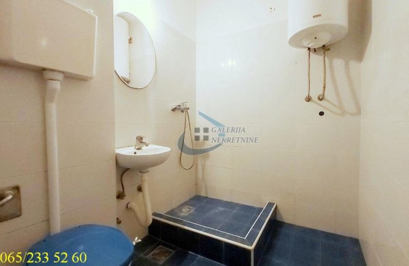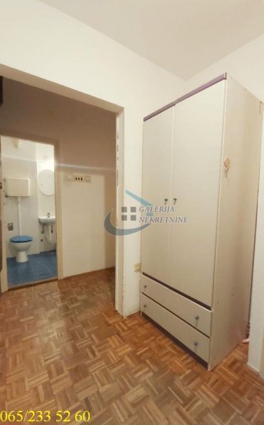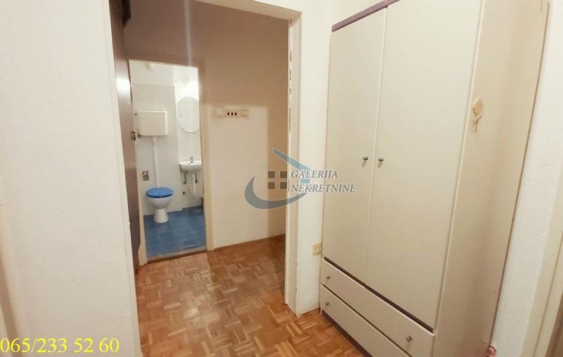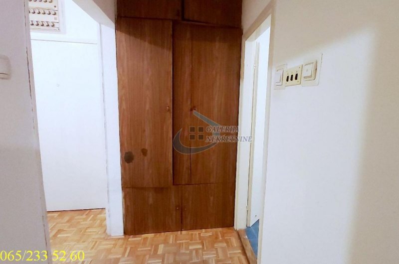 U prilici smo da vam ponudimo dvosoban stan na devetom spratu desetospratne zgrade iz vremena kvalitetne gradnje osamdesetih godina. Zgrada je od žute fasadne cigle, poseduje interfon sa video nadzorom, dva putnička lifta i teretni. Hodnici su uredni i održavani. Stan je jednostrano orijentisan a zbog dovoljnog broja prozora je vrlo osvetljen. Prostorije su vrlo funkcionalno raspoređene i komotne. Lođa površine 3m2 je zastakljena. Lako adaptibilan u dvoiposoban. U izvornom je stanju te se budućem kupcu pruža mogućnost da kroz sređivanje u potpunosti izvuče maksimum iz postojećeg prostora i potpuno ga prilagodi sopstvenim potrebama. Stan ima i pripadajući podrum.