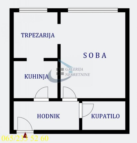 Od prostorija: hodnik, kuhinja, trpezarija, soba i kupatilo.