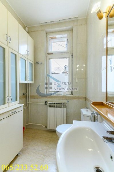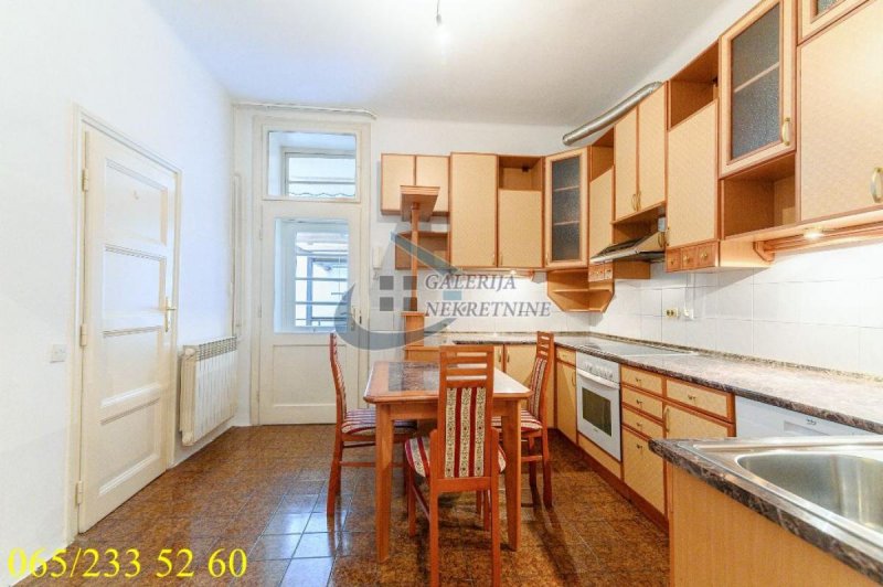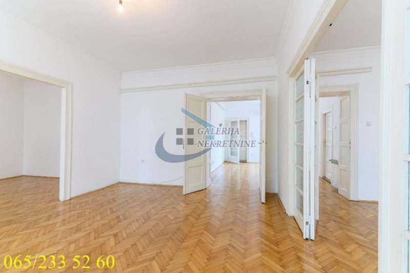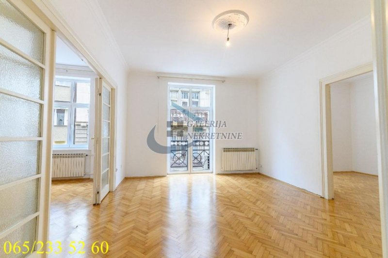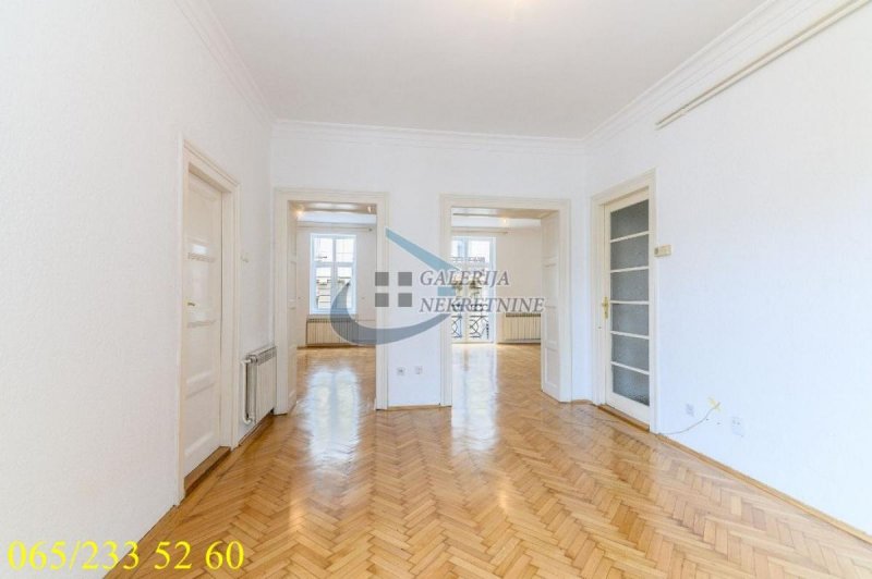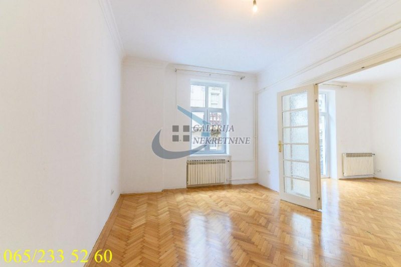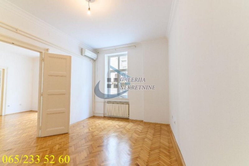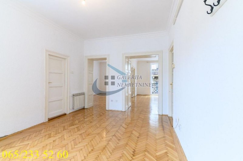 U prilici smo da Vam ponudimo u zakup komforan četvoroiposoban stan na trećem spratu od četri, odlične salonske zgrade građene krajem dvadesetih godina, sa reprezentativnim ulaznim holom, čistim i održavanim ulazom i stepeništem. Zgrada uživa posebnu zaštitu kao kulturno dobro, ugradnja lifta je u toku i očekuje se završetak u narednih par meseci. Stan je trostrano orijentisan, kompletno renoviran, visine plafona preko 3. 30, sa dva mokra čvora. Funkcionalno organizovan prostor, vrlo komforan, izuzetno svetao, izolovan od gradske buke zbog tihog okruženja pešačke zone. Tri međusobno povezane sobe sa ulične strane i centralni osunčan salon su kvalitet ovog prostora. Kuhinja je opremljena, poseduje i sudomašinu, a moguće je da se obezbedi i frižider i veš mašina. Ostatak prostora je prazan, idealan za uređenje prema potrebami zakupca. Godinama je izdavan u svrhu kancelarijskog prostora (sedišta firmi i međunarodnih predstavništava) pa je idealan i za tu namenu, naravno pored namene stanovanja.