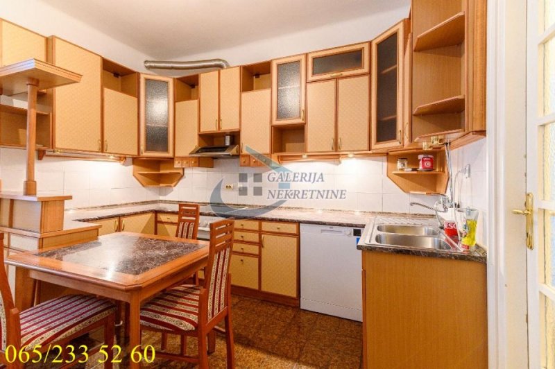 Od prostorija: prostrani ulazni salon, tri veće i jedna manja soba, kuhinja sa trpezarijom, kupatilo, toalet, balkon, ekonomska terasa.