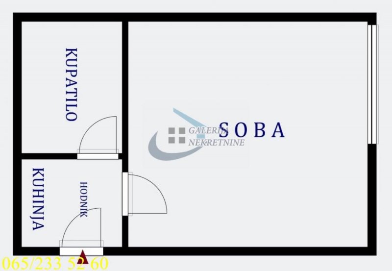 Od prostorija: hodnik sa kuhinjom, soba i kupatilo.