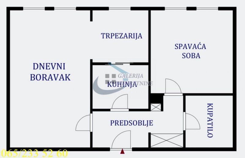 Od prostorija: hodnik, kuhinja, trpezarija, dnevni boravak, spavaća soba, kupatilo.