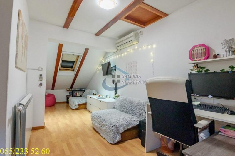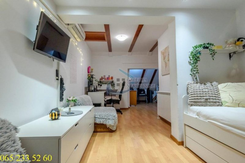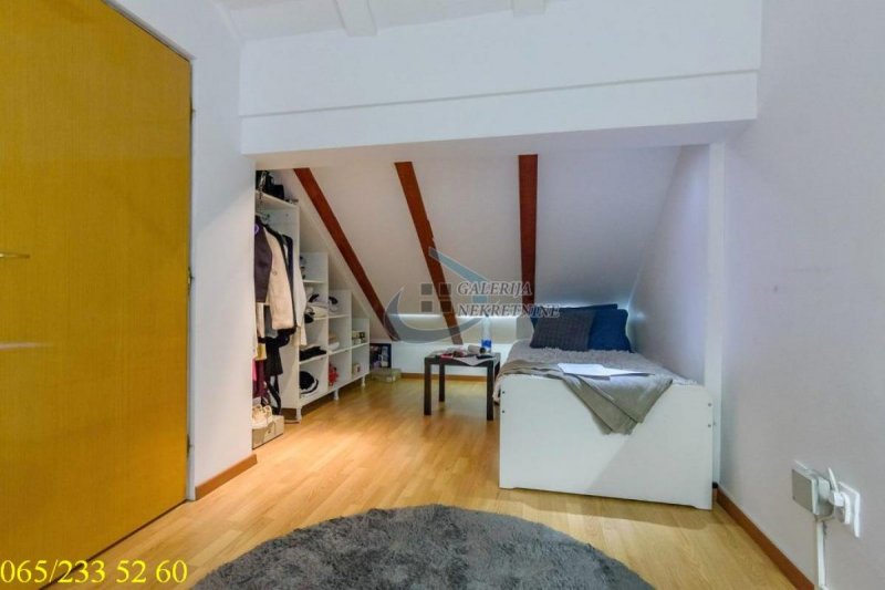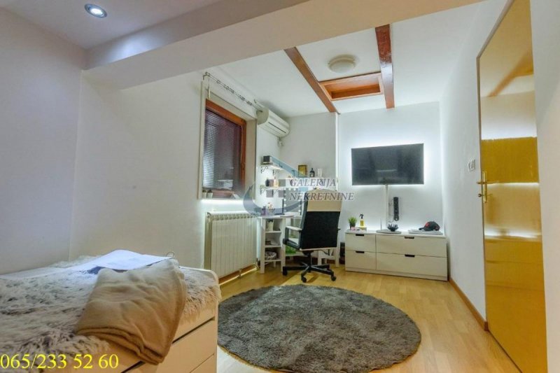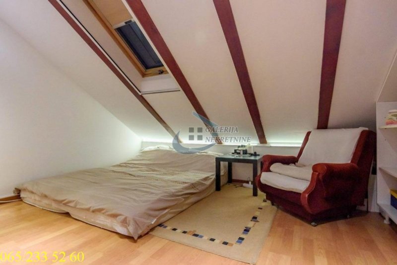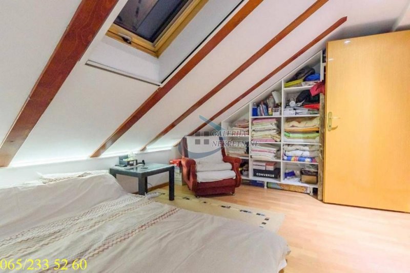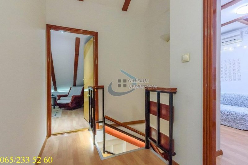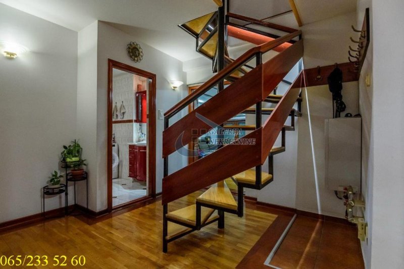 U prilici smo da Vam ponudimo komforan duplex na petom i šestom spratu zgrade zidane 60ih godina prošlog veka, bez lifta. Dogradnja je urađena 2000. godine. Uređen je i opremljen vrlo kvalitetno do najsitnijih detalja, nakon čega je izuzetno pedantno održavan, tako da je ostao kao nov, bez potrebe za ulaganjima. Sve prostorije su komotne, vrlo funkcionalno raspoređene i do najsitnijih detalja osmišljene i organizovane. Donji nivo je dnevni deo, a gornji spavaći. Trostrano je orijentisan sa puno dnevnog svetla. Svaka prostorija je bogato opremljena ambijentalnom rasvetom, što doprinosi posebno prijatnom ugođaju. Komforu doprinosti lepa, velika terasa, na donjem nivou, koja je kao svorena za uživanje. Veliko kupatilo na donjem nivou je sa prirodnom ventilacijom i deljivo, što pruža mogućnost formiranja još jednog mokrog čvora. Grejanje je etažno, na struju. Buduće vlasnike čeka puno dodatnih pogodnosti koje idu uz stan, npr. u stanu ostaje vrlo kvalitetan ugradni nameštaj, ostava u kuhinji, korišćenje prilaznog dela hodnika u zgradi, video nadzor, tavanski prostor, raspolagnje polovinom garsonjere ne donjem nivou, itd.