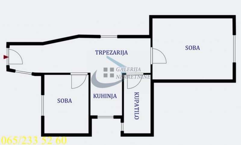 Od prostorija: hodnik sa trpezarijskim delom, kuhinja, dnevni boravak, spavaća soba, kupatilo.