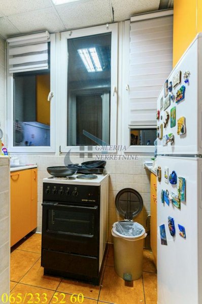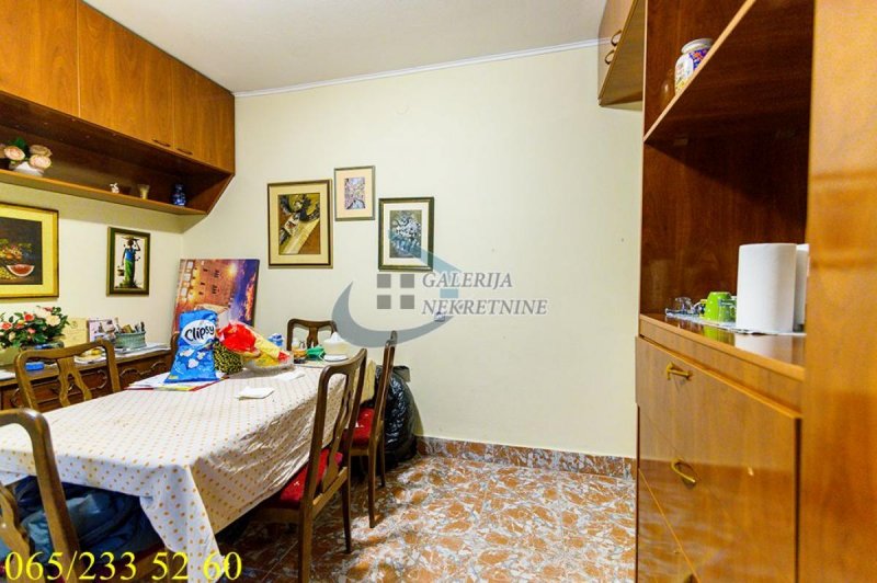 Od prostorija: ulazni hodnik, kuhinja (ex lođa), trpezarija, dnevni boravak, spavaća soba, kupatilo, perionica, ostava.