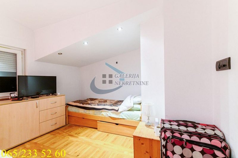 U prilici smo da vam ponudimo konforan trosoban stan na četvrtom i petom spratu uredne i održavane zgrade bez lifta, u ulici Dr Đorđa Joanovića. Stan je koncipiran kao duplex, nastao je tako što je tavanski prostor iznad stana 2000-te godine adaptiran i pripojen stanu kao drugi nivo. Dvostrano je orijentisan, okružen zelenilom, izuzetno svetao i bez buke. Perfektno je projektovan i organizovan do najsitnijih detalja, zadovoljavajući estetske i funkcionalne zahteve savremenog stanovanja. U skladu sa modernim trendovima na donjem nivou je kuhinjsko trpezarijski prostor, dnevni boravak sa izlazom na zastakljenu terasu, a na gornjem nivou su dve spavaće sobe i kupatilo. Bez krovnih prozora a postojeće kosine na gornjem nivou ne remete na funkcionalnosti prostora. Konforu dodatno doprinose kupatila, dok grejanje na struju omogućava racionalizaciju troškova. Stan ima i pripadajući podrum.