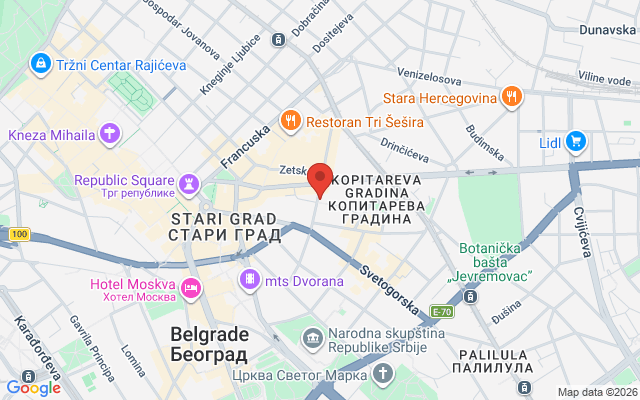 Nepokretnost se nalazi na izuzetnoj lokaciji u Cetinjskoj ulici, u neposrednoj blizini Skadarlije, Bajlonijeve pijace i Trga republike.