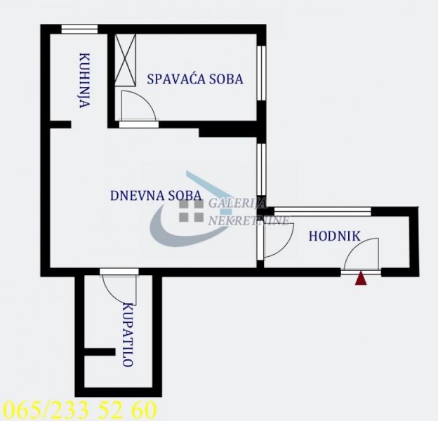 Od prostorija: hodnik, kuhinja, dnevni boravak, spavaća soba i kupatilo.