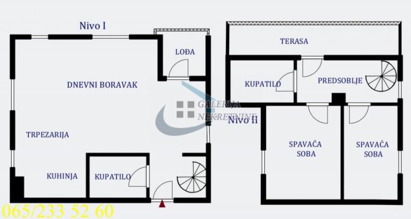 I nivo: hodnik, dnevni boravak sa trpezarijskim delom i kuhinjom, kupatilo, lođa.